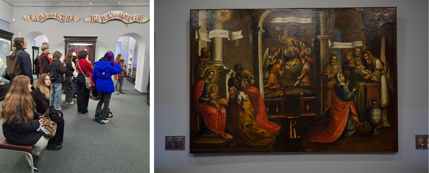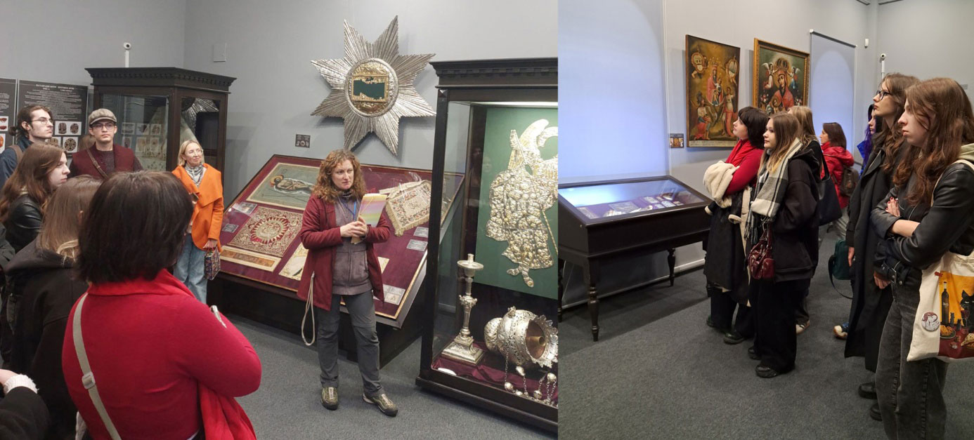 Для здобувачів освіти 2 та 3 курсів співробітники відділу наукової реставрації та консервації провели пізнавальну екскурсію, під час якої учасники дізналися про особливості дослідження, реставрації та зберігання музейних об’єктів культурної спадщини. Екскурсанти мали змогу побачити процеси відновлення і збереження творів іконопису, живопису, виробів зі срібла, поліхромної скульптури, одягу, гравюри та книжок.