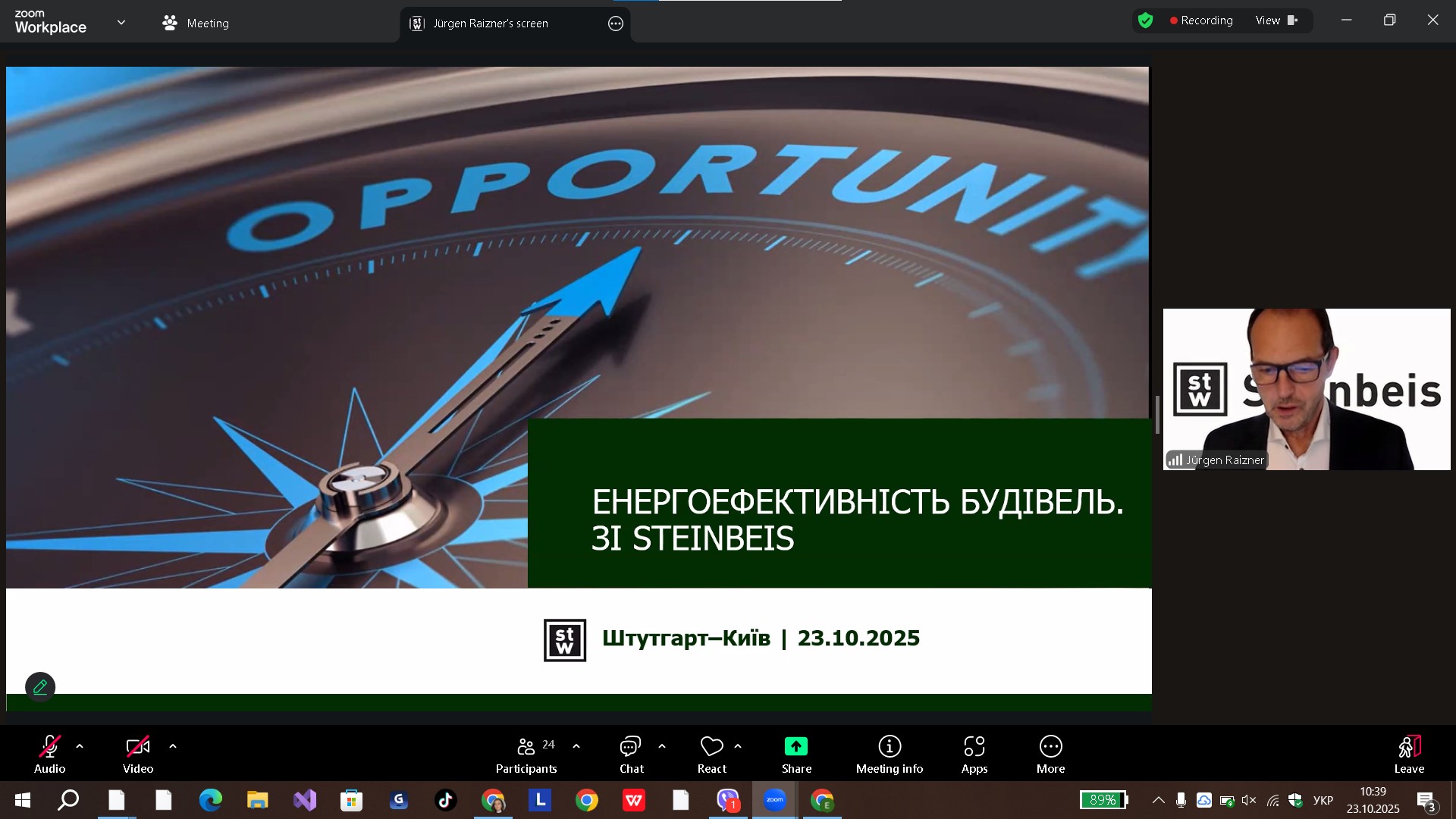 Серед закордонних гостей із доповіддю виступив Jürgen Raizner – директор Steinbeis Transfer Center (Steinbeis-Danube Center, Німеччина), який презентував доповідь з теми «Енергоефективність будівель. Досвід Steinbeis».