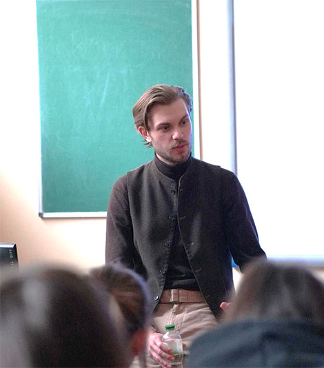 В’ячеслав навчається в аспірантурі на факультеті дизайну КНУТД за спеціальністю 022 Дизайн (наук. керівник – Людмила Мельник, кандидат технічних наук, доцент), тому лекція була організована ним в межах науково-педагогічної практики.