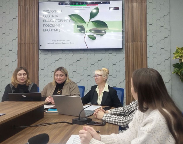 Також, в короткостроковому курсі для учнів коледжів та студентів ЗВО прийняли участь здобувачі другого рівня вищої освіти Діана ПРИГАРСЬКА, яка розповіла всім присутнім про перспективи впровадження біоекономіки у фармацевтичній галузі та Аліна ДМИТРЕНКО, яка представила доповідь на тему «Екологічна освіта та біомоніторинг у повоєнній економіки України».