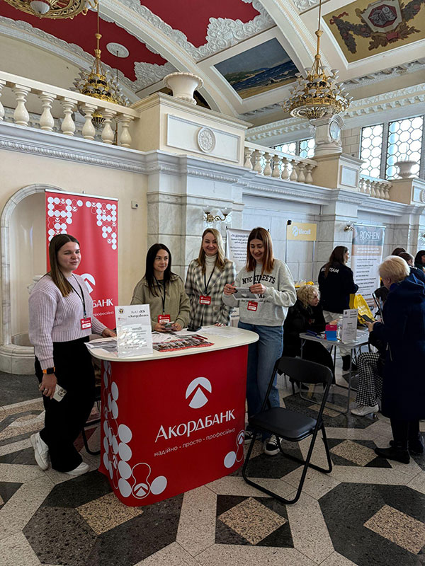 Студенти активно спілкувалися з представниками компаній та отримали чимало корисної інформації про можливості працевлаштування. Зокрема з-поміж найцікавіших пропозицій для студентів-фінансистів АО «ІдеяБанк» пропонує посаду менеджера з роботи з клієнтами із заробітною платою від 28 000 грн та гнучким графіком, що дає змогу поєднувати роботу з навчанням.