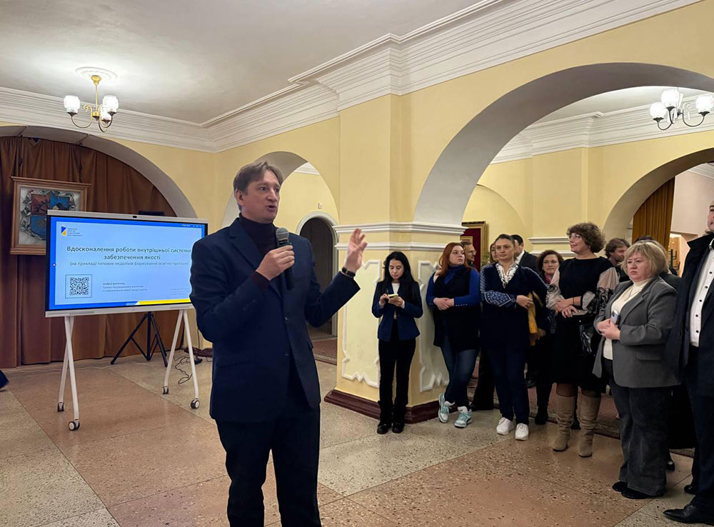 Захід об’єднав керівників і фахівців структурних підрозділів із забезпечення якості освіти, гарантів освітніх програм, представників закладів вищої освіти, а також експертів НАЗЯВО. Його метою стало посилення комунікації між Агентством та університетами, обмін досвідом щодо впровадження ефективних механізмів внутрішнього забезпечення якості освітньої діяльності та якості вищої освіти.