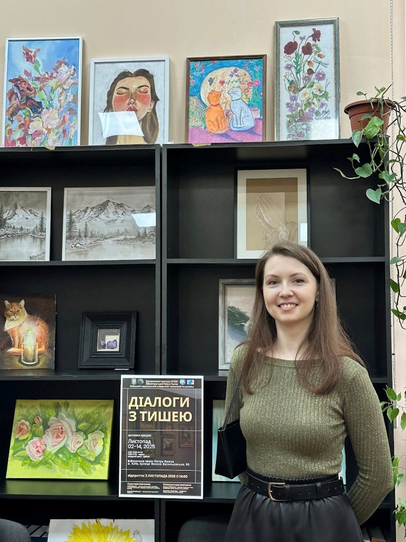 До 95-річчя КНУТД з 2 по 15 листопада 2025 року в бібліотеці імені Петра Панча Голосіївського району м. Києва експонувалась колективна художня виставка «Діалоги з тишею» картин студентів та викладачів кафедри графічного дизайну КНУТД.