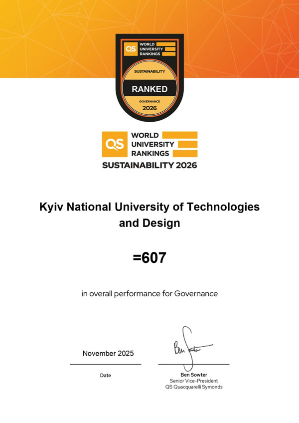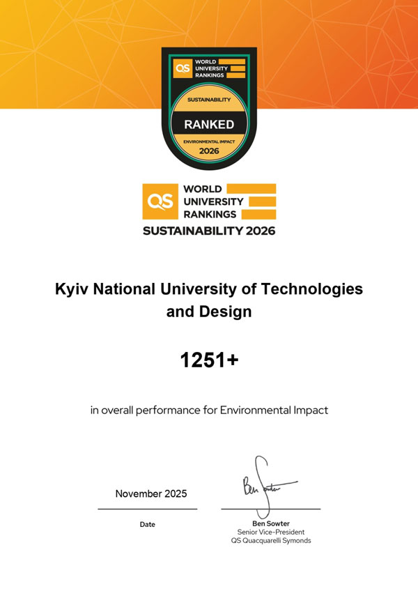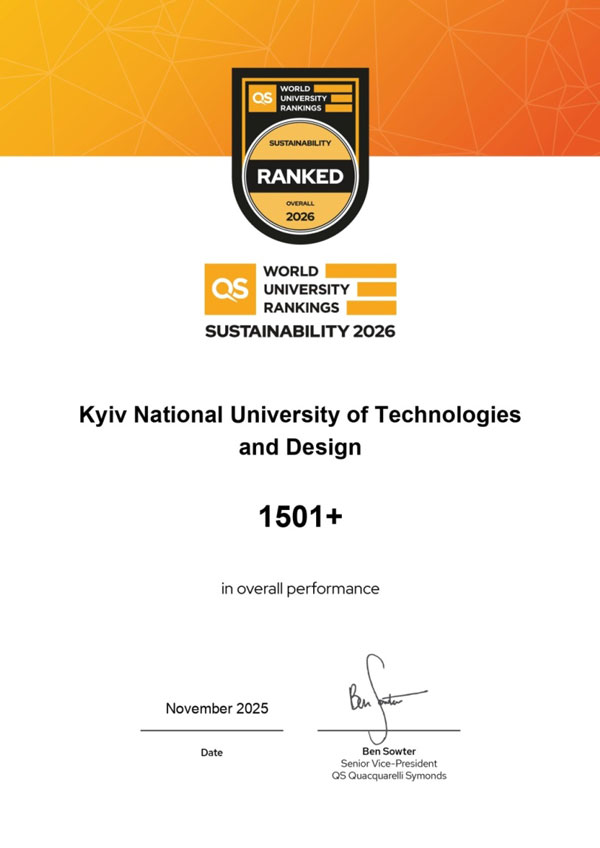 Київський національний університет технологій та дизайну цього року в друге став учасником рейтингу, отримавши у загальному підрахунку 499 позицію серед 620 європейських університетів і 10 позицію серед 18 українських ЗВО, які потрапили до рейтингу у 2025 році.