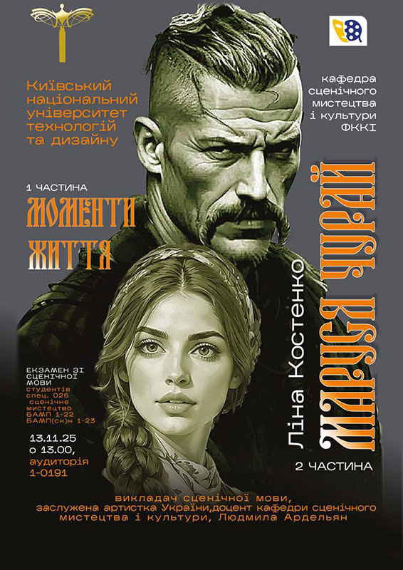 13 листопада 2025 року у Київському національному університеті технологій та дизайну (ауд. 1-0191) відбувся екзамен зі сценічної мови для здобувачів вищої освіти 4 курсу спеціальності 026 Сценічне мистецтво (групи БАМП1-22, БАМП(СК)н 1-23).