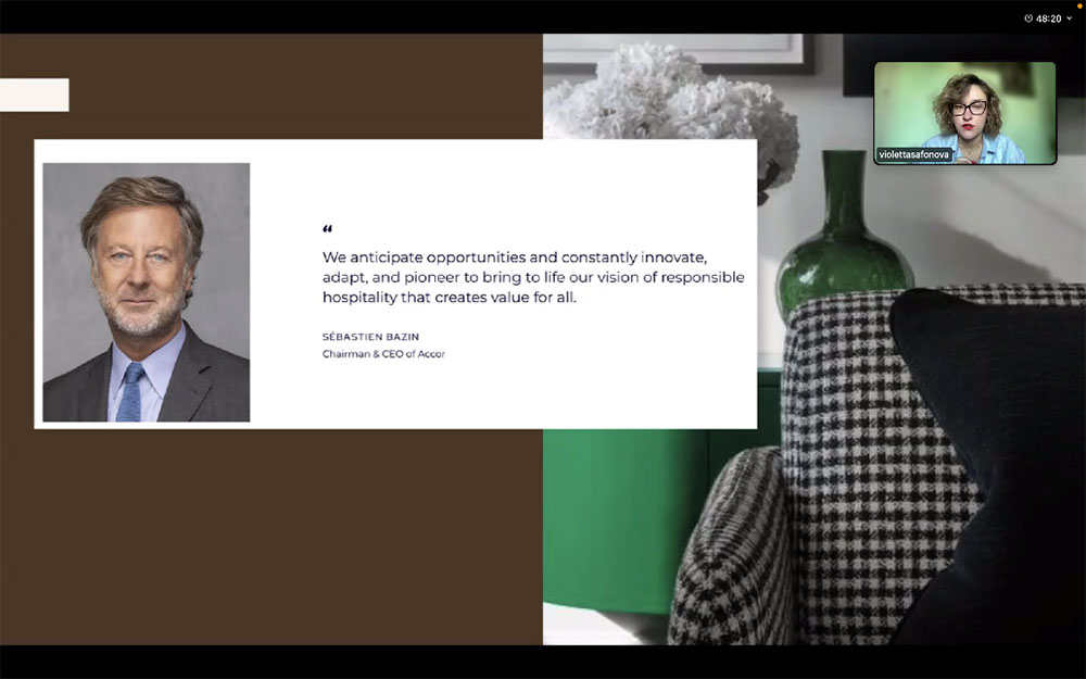 Під час зустрічі Віолетта детально розповіла про особливості функціонування п’ятизіркового готелю, організацію роботи фронт-офісу, взаємодію з різними категоріями гостей, зокрема, дипломатами, політиками, фахівцями у сфері бізнесу та фінансів та іншими високопоставленими клієнтами. Окрему увагу було приділено питанням дотримання конфіденційності та важливості професійної комунікації в преміум-сегменті готельного бізнесу.