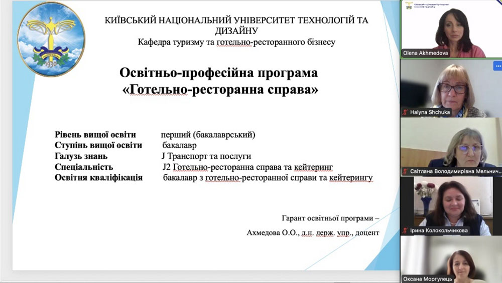 Олена Ахмедова, доктор наук з державного управління, професор кафедри туризму та готельно-ресторанного бізнесу КНУТД, гарант ОП «Готельно-ресторанна справа» першого (бакалаврського) рівня вищої освіти за галуззю знань J «Транспорт та послуги» спеціальності J2 «Готельно-ресторанна справа та кейтеринг», представила проєкт ОП. Під час презентації було акцентовано практико-орієнтований зміст програми, наголошено на важливості використання в навчальному процесі новітніх інформаційних технологій в готельно-ресторанній сфері, необхідності інтеграції реальних кейсів індустрії гостинності в освітні компоненти та посиленні співпраці з роботодавцями. Освітня програма викликала жваву дискусію та фахове обговорення.
