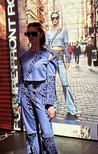 Здобувачі освіти Євгенія Лазарів та Анастасія Стельмах гідно представили КНУТД та продемонстрували виготовлену в матеріалі модель одягу, велику 3D-модель на сцені висотою 8 м, а також низку промо-відео та відео процесу створення. Моделі створені із використанням 3D-друку, лазерної різки, цифрового текстилю, VR/AR-технологій та генеративного 3D-моделювання, а сотні проєкцій на стінах Fabrique des Lumières і голографічне шоу перетворили подіум на інтерактивний тривимірний простір, де цифрові та фізичні елементи гармонійно поєднувалися.