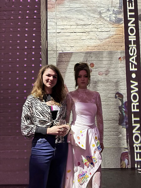 Здобувачі освіти Євгенія Лазарів та Анастасія Стельмах гідно представили КНУТД та продемонстрували виготовлену в матеріалі модель одягу, велику 3D-модель на сцені висотою 8 м, а також низку промо-відео та відео процесу створення. Моделі створені із використанням 3D-друку, лазерної різки, цифрового текстилю, VR/AR-технологій та генеративного 3D-моделювання, а сотні проєкцій на стінах Fabrique des Lumières і голографічне шоу перетворили подіум на інтерактивний тривимірний простір, де цифрові та фізичні елементи гармонійно поєднувалися.