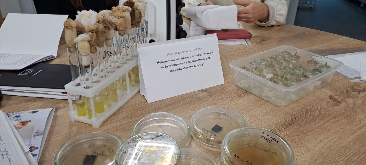 Нещодавно в Київському національному університеті технологій та дизайну відбувся міждисциплінарний круглий стіл на тему «Новітні наноматеріали з антисептичними та фунгіцидними властивостями для індивідуального захисту». Провідні фахівці різних кафедр зібралися для обговорення технологій одержання матеріалів для засобів індивідуального захисту, які мають значний потенціал для впровадження у промислове виробництво.