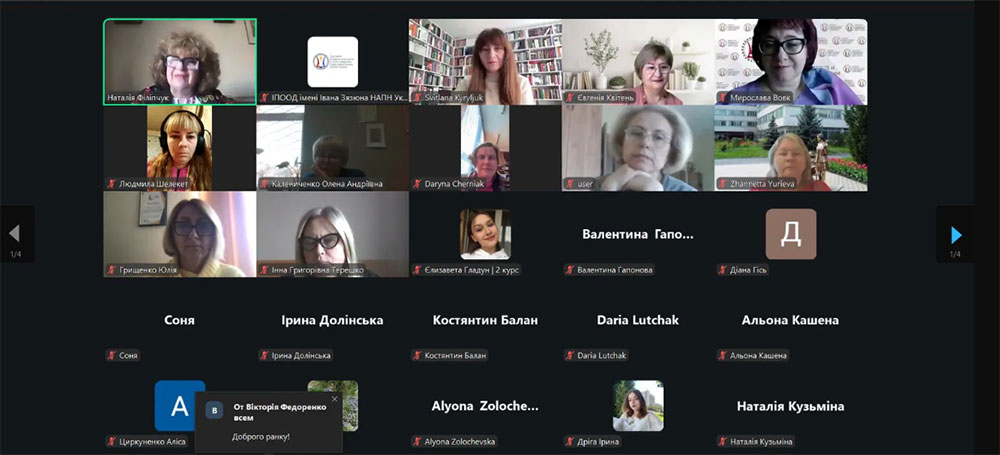 Серед учасників вебінар прослухали також представники Київського національного університету технологій та дизайну – викладачі Алла Семенова доктор педагогічних наук, професор завідувач кафедри ПОСТД, Інна Косяк кандидат педагогічних наук, доцент, доцент кафедри ПОСТД, Альона Тихомирова кандидат психологічних наук, старший викладач кафедри ПОСТД, а також студентки Вікторія Стецюк (БПТ-22) і Дар’я Білоцька (МгПТ-25).