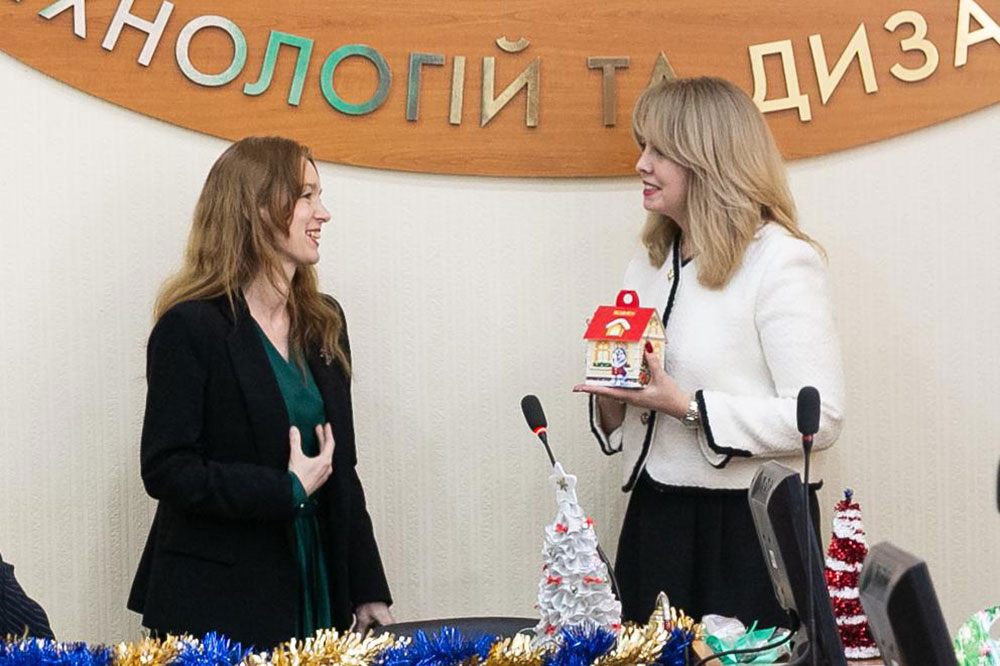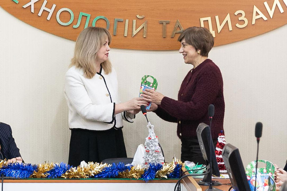 Олександра Володимирівна Ольшанська, в.о. ректора КНУТД, доктор економічних наук, професор, тепло привітала колектив факультету дизайну з прийдешніми святами, побажала усім миру, щастя, любові, здійснення мрій та реалізації планів.