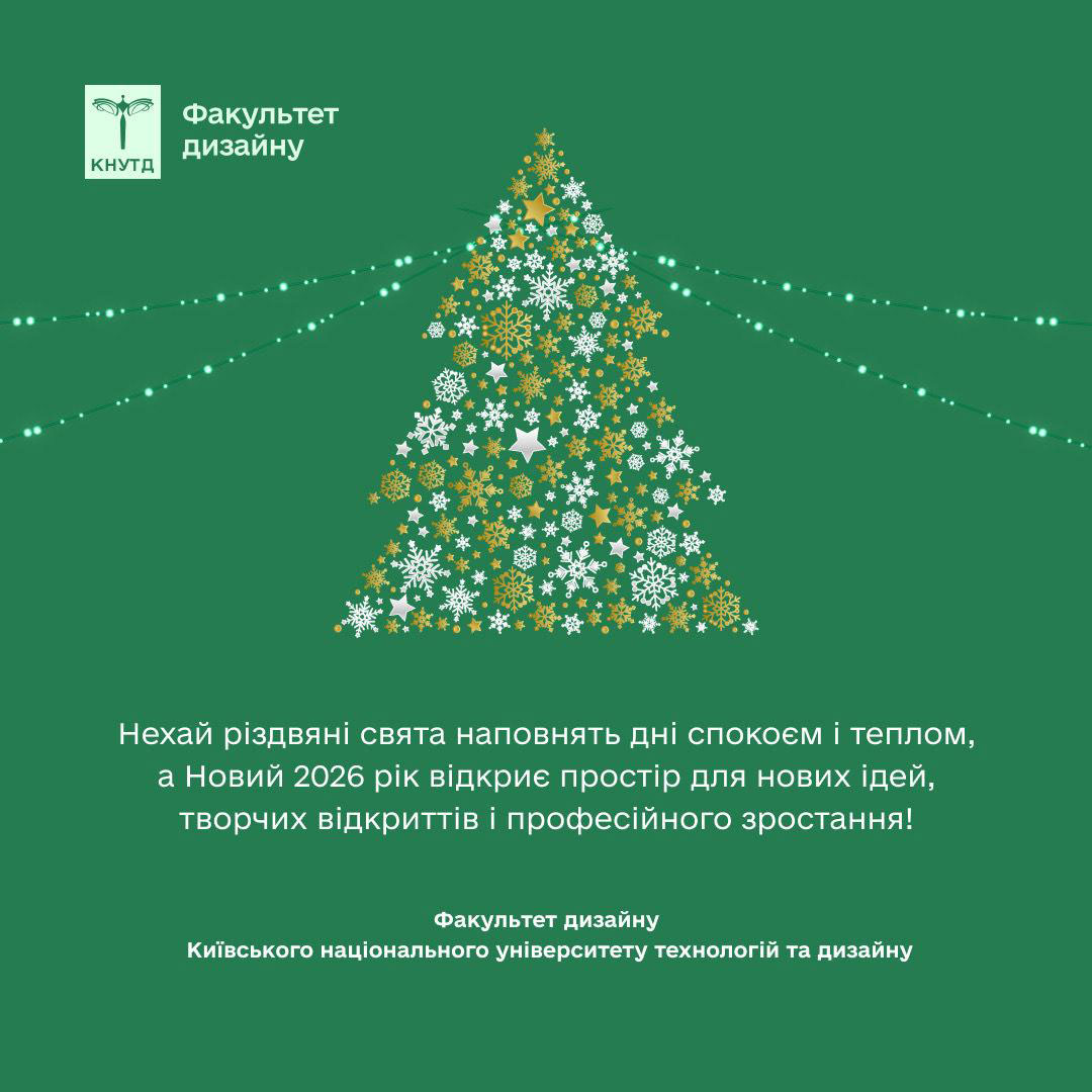 Бажаємо колективу Київського національного університету технологій та дизайну, щоб наступний 2026 рік був мирним, радісним і щасливим для кожного! Нехай різдвяні свята наповнять дні спокоєм і теплом, а Новий рік принесе безліч оригінальних ідей, творчих відкриттів та успішного втілення всіх задумів!