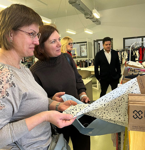 Також учасники проєкту відвідали текстильне підприємство «COLORA», яке займається опорядженням текстильних матеріалів. Представник компанії ознайомив відвідувачів з етапами фарбування та сушки матеріалів, нанесення принтів, роботою лабораторії по дослідженню властивостей тканин та трикотажних полотен, дизайнерським відділом підприємства.