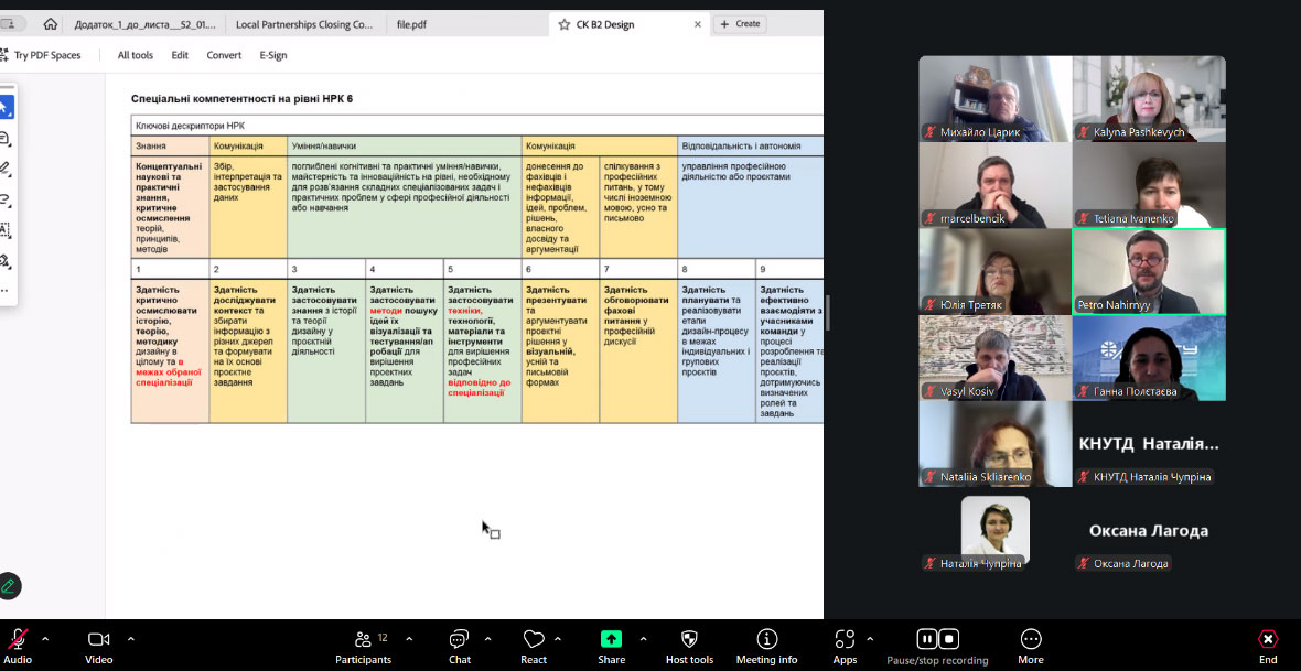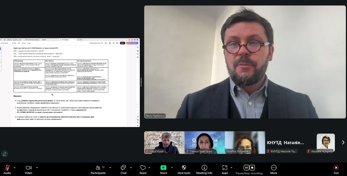 В зустрічі взяли участь члени науково-методичної комісії (підкомісії) «В2 Дизайн» сектору вищої освіти Науково-методичної ради МОН України: