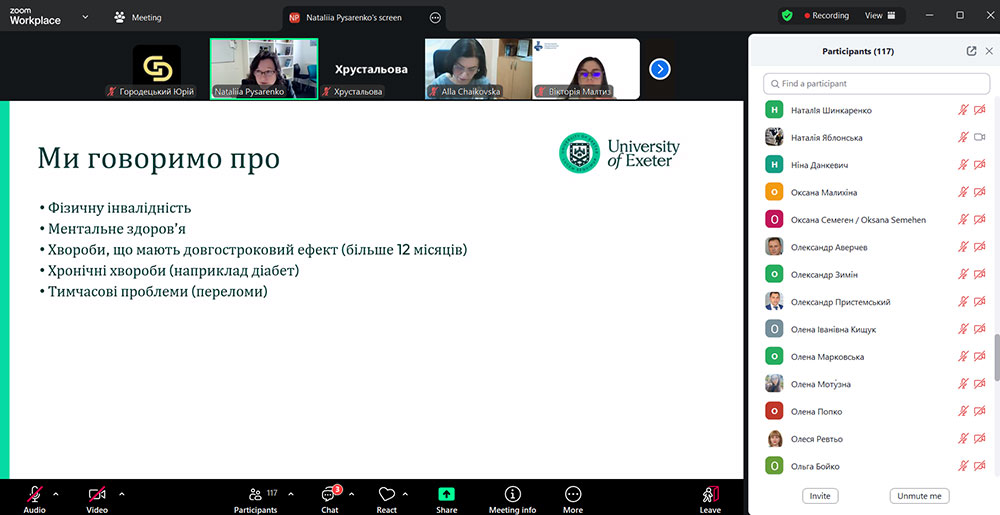 Кафедра маркетингу висловлює щиру подяку президентці Української Асоціації Маркетингу Ірині Вікторівні Лилик, а також ДУ «НМЦ ВФПО» та University of Exeter за високий рівень організації вебінару, активну підтримку розвитку інклюзивної освіти та зміцнення міжнародного академічного партнерства.
