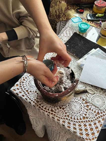 Завершальний етап – очне практичне заняття. Використовуючи принципи Upcycling (вторинне використання макулатури), майбутні культурологи створювали символічні об'єкти. Образ граната, як ключова алюзія на світ Параджанова, став головним результатом творчої сесії. Кожен виріб отримав власну «музейну атрибуцію».