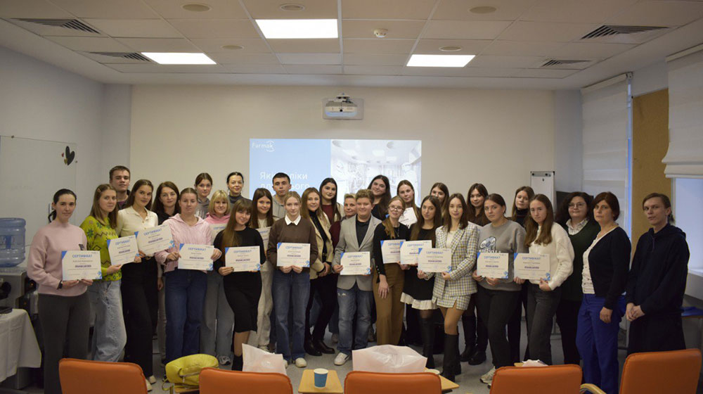 У листопаді 2025 року науково-педагогічні працівники та студенти кафедри взяли участь у освітньому проєкті Farmak Lab, у рамках якого відбулася лекція на тему «Сучасні методи та матеріали для пакування лікарських засобів». Спікерами виступили Павло ОМЕЛЬЯНЕНКО, начальник сектору досліджень пакування АТ «Фармак», та Вероніка ДИБЧУК, старший майстер цеху з виготовлення твердих лікарських форм АТ «Фармак». Павло ОМЕЛЬЯНЕНКО детально розкрив функції первинної упаковки лікарських засобів, основні критерії вибору пакувальних матеріалів, що враховують хімічну сумісність з активними інгредієнтами, бар'єрні властивості та механічну міцність, а також акцентував увагу на регуляторних вимогах до первинної упаковки. Вероніка ДИБЧУК розповіла про роботу пакувальних ліній, продемонструвавши функціонування сучасного автоматизованого обладнання для пакування таблеток та капсул. Важливу частину лекції було присвячено контролю якості на етапі пакування, включаючи перевірки цілісності упаковки, правильності маркування та сучасні методи детекції дефектів. Фахівці також окреслили актуальні тренди у пакуванні ліків, серед яких екологічність матеріалів, розробка розумних упаковок з інтегрованими сенсорами та впровадження захисних елементів для запобігання фальсифікації.