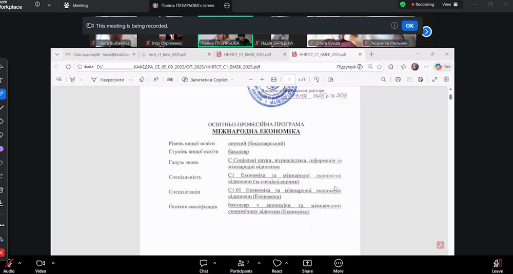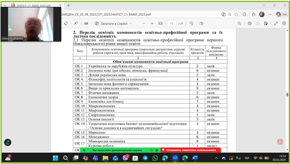 У ході робочої зустрічі було проаналізовано перелік освітніх компонентів, логіку їх взаємозв’язку, баланс теоретичної та практичної підготовки, а також можливості інтеграції сучасних цифрових інструментів, аналітичних методів і міждисциплінарних підходів.