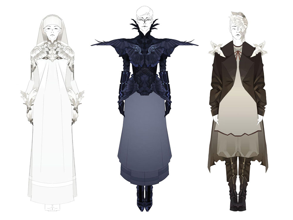 Поліна Афанасьєва, гр. БШМК-25 Ескізи одягу за поемою-містерією «Великий льох» («Три душі», «Три ворони», «Три лірники»). |
