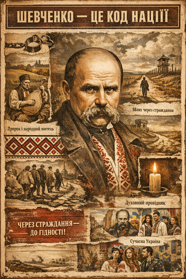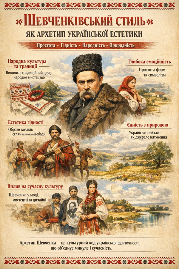 Тарас Шевченко – постать, чия творчість сформувала ціннісні орієнтири української нації та стала символом боротьби за свободу, гідність і духовну незалежність. Його художня й літературна спадщина й сьогодні залишається потужнит джерелом смислів, що знаходять відображення в сучасних культурних практиках і наукових інтерпретаціях,окрема в сфері мистецтва, моди та психології.