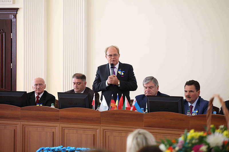 Ректор університету, член-кореспондент Національної академії педагогічних наук України, доктор економічних наук, професор Іван Михайлович Грищенко тепло привітав гостей, співробітників та студентів зі святом.