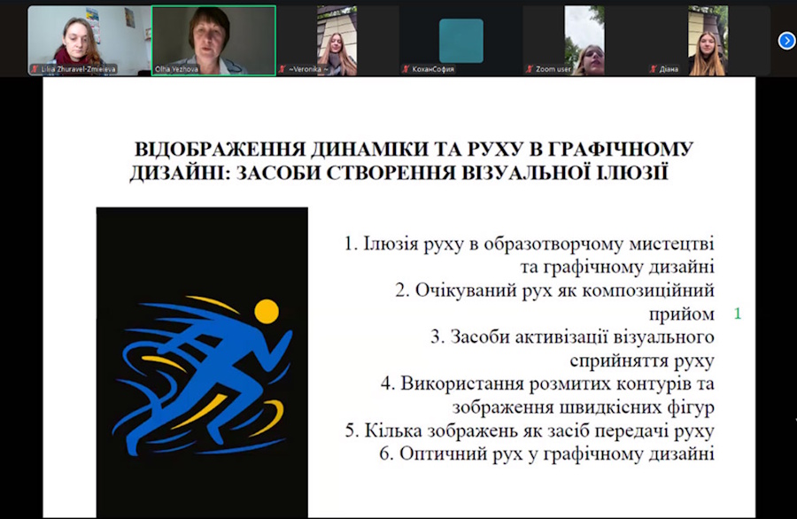 1 жовтня 2025 року в межах Тижня дизайну КНУТД відбулася лекція Ольги Єжової, доктора педагогічних наук, професора кафедри графічного дизайну КНУТД, на тему «Відображення динаміки та руху в графічному дизайні: засоби створення візуальної ілюзії».