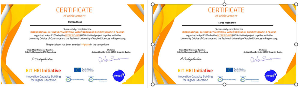 Здобувачі факультету на Міжнародному конкурсі «Відновлення через соціальне підприємництво» (2024р.)